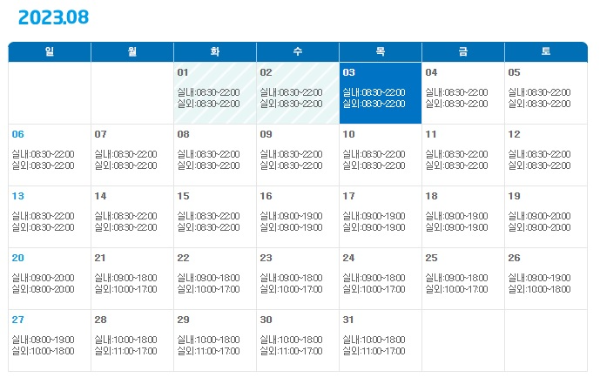 2023년 8월 운영시간은 아래와 같습니다.